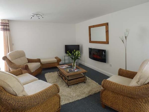 Over three floors. Two bedrooms: 1 x second floor super king-size double (zip/link, can be twin on request), 1 x double. Bathroom with bath, separate shower, basin and WC. Kitchen with dining area and snug. First floor utility. First floor sitting room with electric fire.