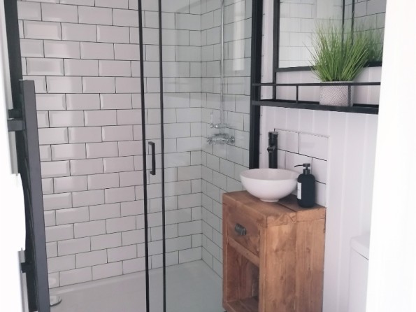 The wagon sleeps up to four people in two bedrooms, one double and one bunk bedroom. There’s a full kitchen with sink, oven, hob, fridge, kettle and toaster. The living area has a dining table, sofa and TV, and there’s a separate shower room / WC.