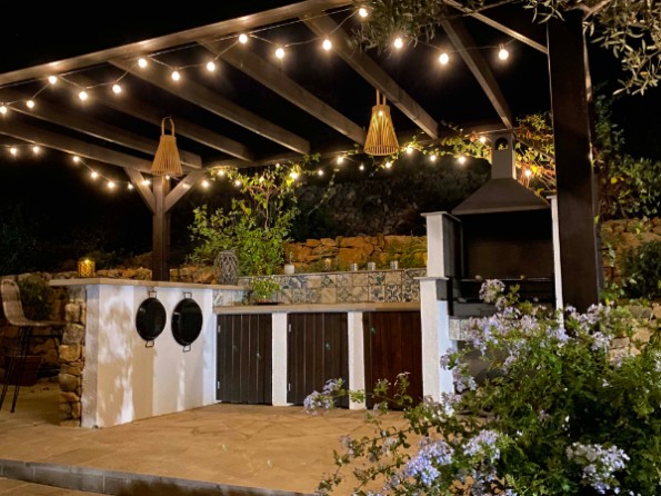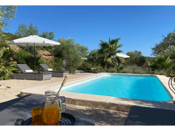 Pool view apartment has a private covered terrace with pool views, dining table and chairs. Outside in the shared areas there’s lots of space for relaxing, dining, and sunbathing. There is a saltwater pool and a pool terrace with comfortable loungers, parasols and a dining space. There is a fully equipped outdoor kitchen with a wood fired BBQ. There are three relaxation pods in the terrace gardens - a four poster daybed pod (also suitable for a night under the stars), the Zen Zone pod with its super sized bean bags and mountain views, and the Olive pod, made up of a pair of loungers under the shade of an olive tree. Guests are welcome to wander around the olive groves, or take a drink up to ‘La Percha’, seating on the hillside with wonderful mountain views and stunning sunsets. There is a Pentanca court set amongst the olive trees with seating for spectators too. Ample parking on site.