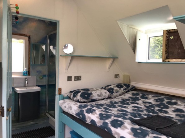 The house has been thoughtfully designed to accommodate two people and in spite of its size it has everything you could need. There is an excellent bed 140 x 200cm with en-suite shower room, as well as a small kitchen with a 4 gas hob, combi microwave oven, kettle, toaster, fridge, cutlery, crockers and utensils. Inside the design is chic and stylish, and complemented by local artwork and driftwood pieces, and the large windows offer wonderful beach views.