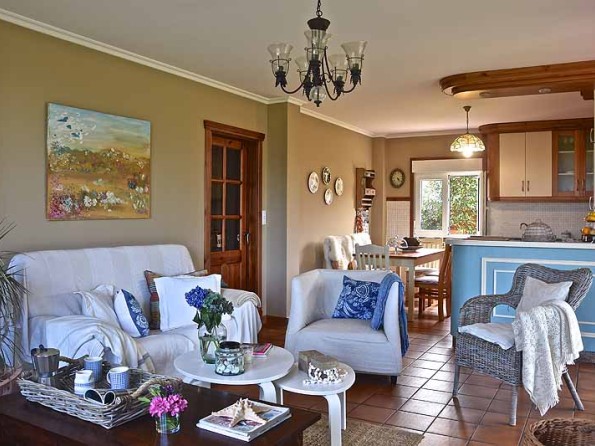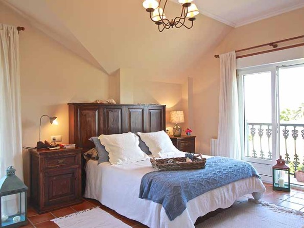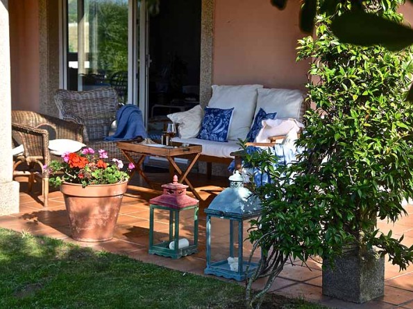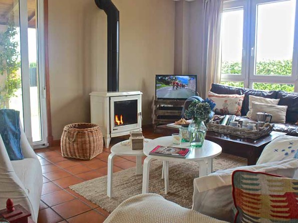 The house has five bedrooms – four doubles and one twin – and three bathrooms. There are also two well equipped kitchens (one interior and one exterior), a spacious living room with a fireplace and a utility room. One bedroom and two bathrooms are on the ground floor so they are accessible for disabled or less able guests.