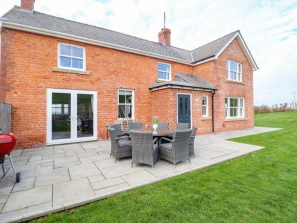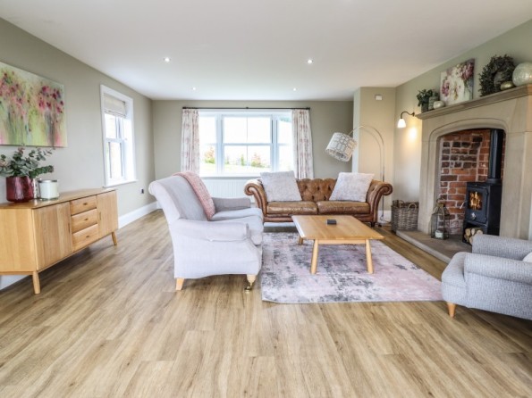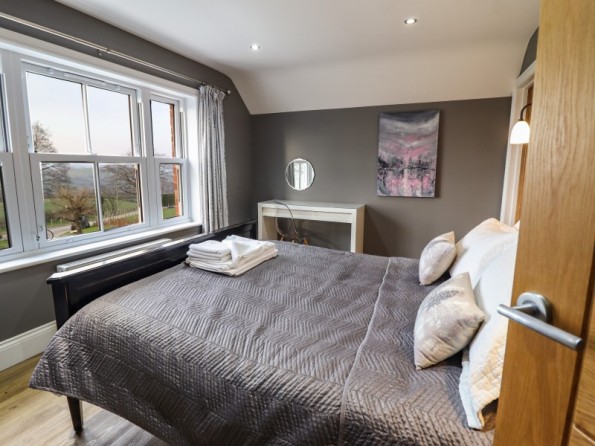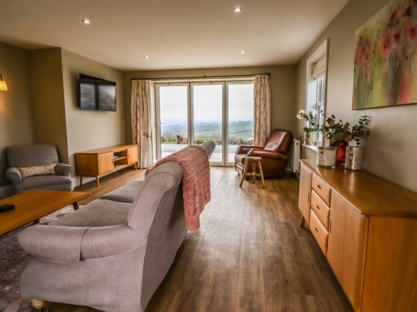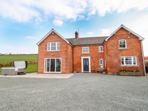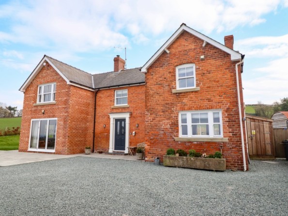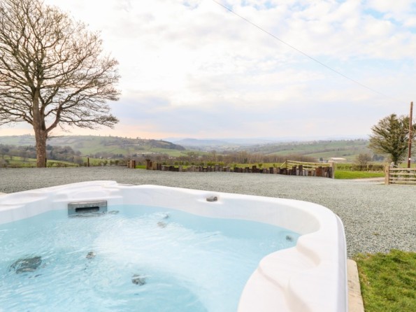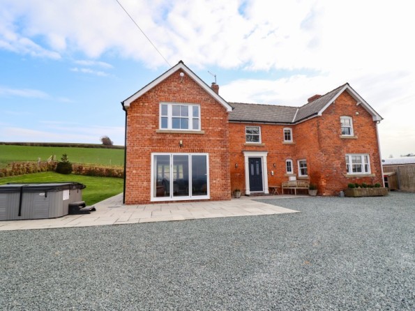 A stylish, modernised farmhouse with stunning country views. Luxury hot tub, woodburner, two reception rooms. Pet-friendly. WiFi. Welshpool 8 miles.
