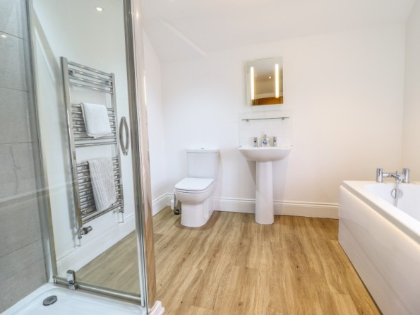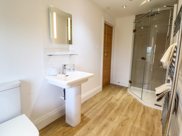 Four bedrooms: 2 x king-size double (one with Jack-and-Jill access to shower room), 2 x twin (one zip/link can be king-size on request, with Jack-and-Jill access to shower room). Bathroom with bath, separate shower, basin and WC. Shower room with shower, basin and WC. Ground floor basin and WC. Kitchen with dining area. Sitting room with woodburner. Snug.