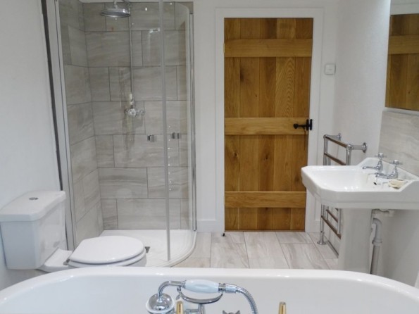 All ground floor. One super king-size double bedroom (6' zip-linked bed or twin on request). Sitting room with wood burning stove and dining area. Kitchen. Bathroom with roll-top bath, separate shower, WC and basin.