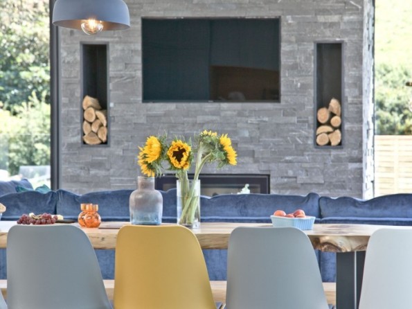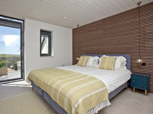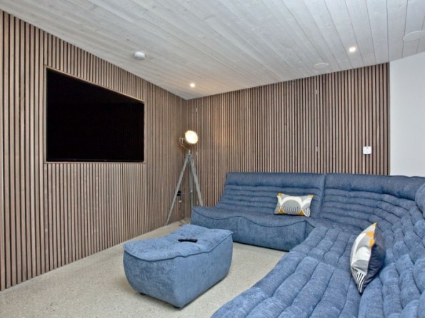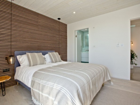 An amazing open plan interior features a large lounge area and a uniquely designed stone wall with fireplace and flat screen television. Dine and entertain simultaneously from the scandi-style kitchen and breakfast bar or share meals together in the dining area with the added luxury of floor to ceiling glazing that showcases the spectacular views surrounding the property and out to sea. Four superb bedrooms and three large bathrooms comfortably accommodate a party of eight guests with the master en-suite featuring an enormous swivel window for keeping things cool in the hot summer months. Each bedroom features cedarwood cladding, luxurious linens and large windows that fill the rooms with natural light for a bright and airy atmosphere, creating a calm space for an amazing night’s sleep; and for those night owls that prefer to capitalise on every hour, there’s a fantastic cinema room complete with sink-in sofas and that all-important soundproofing.