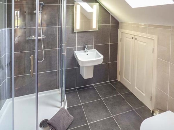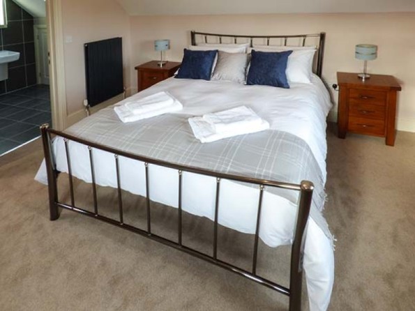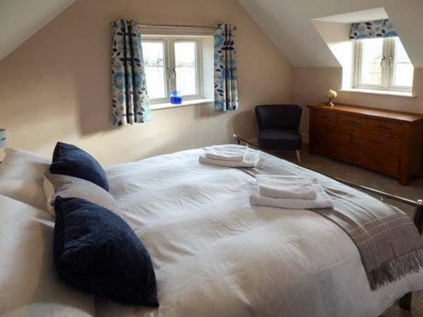 Three bedrooms: 1 x king-size double with en-suite shower, basin and WC, 1 x twin (zip/link, can be super king-size double on request), 1 x ground floor twin (zip/link, can be super king-size double on request). Bathroom with bath, separate shower, basin and WC. Ground floor basin and WC. Kitchen with dining area and breakfast bar. Utility. Sitting room with woodburning stove.