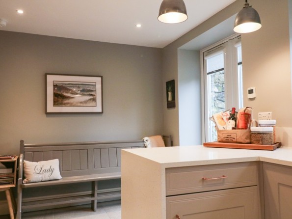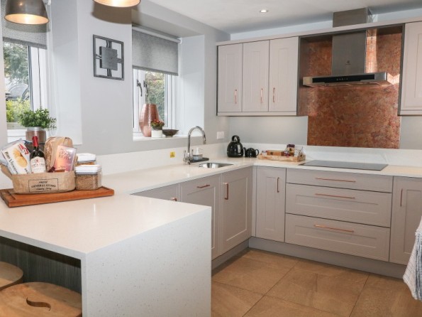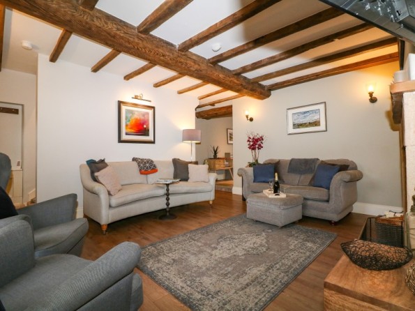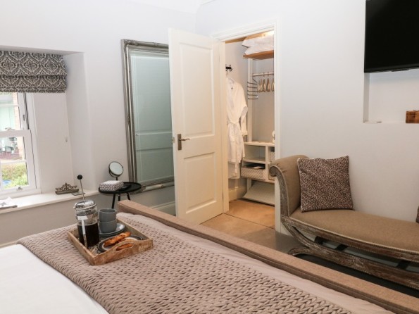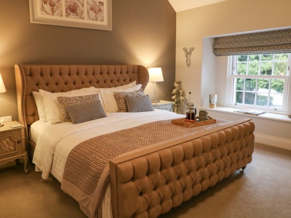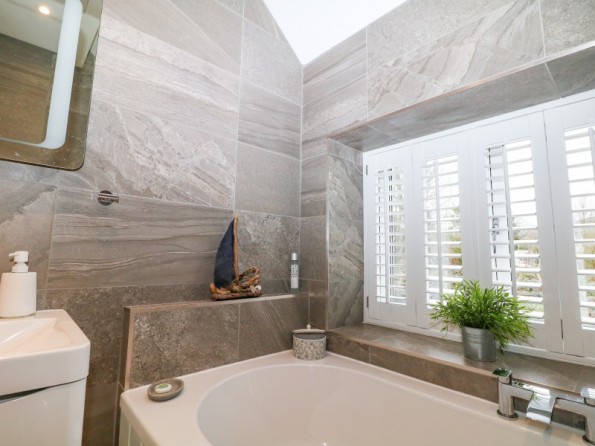Three bedrooms with TVs: 1 x super king-size double, 1 x king-size double, 1 x twin (zip/link, can be king-size double on request). Bathroom with separate shower, basin and WC. Ground floor cloakroom with basin and WC. Kitchen. Utility. Dining room. Sitting room with woodburning stove.