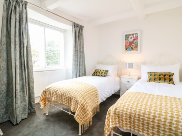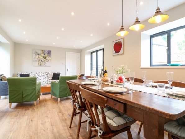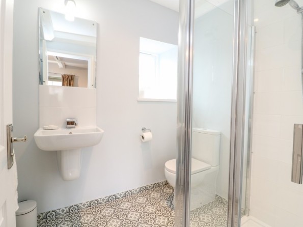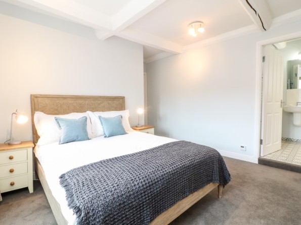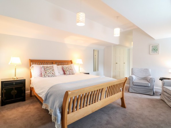 Three bedrooms: 2 x king-size with en-suite shower, basin, heated towel rail and WC. 1 x twin. Family bathroom with bath, basin, WC, heated towel rail. Kitchen. Dining room. Sitting room
