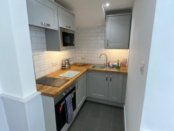 Electric oven and hob, fridge with ice box, microwave, toaster and kettle
