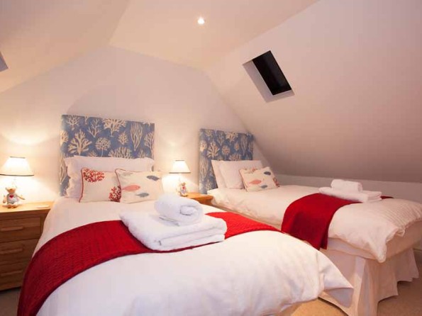 On the ground floor there are two bedrooms and two bathrooms, as well as a lounge with flat screen TV and a ‘wood burning-style’ gas stove, a ‘snug’ with another TV and a selection of books, games and DVDs, a well equipped kitchen and a large oak dining table. On the first floor there are two further bedrooms - an en-suite super king and a twin - as well as a family bathroom kitted out with White Company toiletries and a chill out area with toys and games.