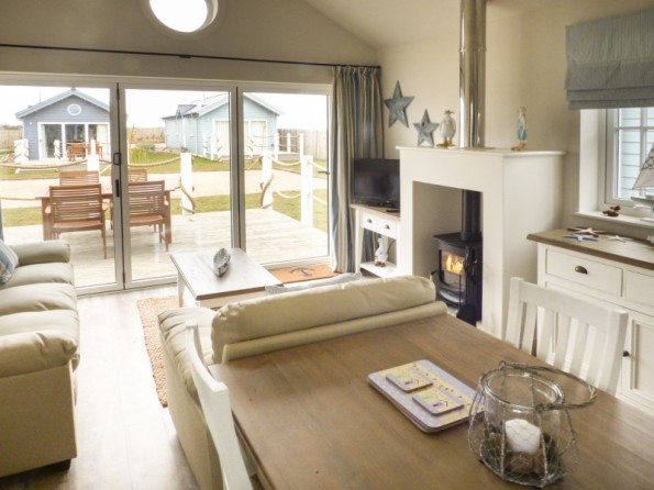 Fabulous beach house at The Bay holiday village near Filey. Pet-friendly. Open-plan. Woodburner. Off-road parking. Superb on-site facilities including swimming pool, gym. Beach 10 mins walk.