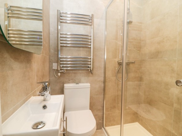 Three bedrooms: 1 x ground-floor king-size (zip/link, can be twin on request) with en-suite wet room with walk-in shower, basin, heated towel rail and WC, 1 x king-size (zip/link, can be twin on request) with en-suite walk-in shower, basin, heated towel rail and WC, 1 x king-size with en-suite walk-in shower, basin, heated towel rail and WC. Open-plan living space with kitchen, dining area and sitting area