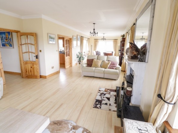 All ground floor. Two bedrooms with en-suite shower, basin and WC: 1 x super king-size double, 1 x double. Bathroom with bath, shower over, basin and WC. Kitchen with dining area. Utility. Sitting room with dining area, bar.