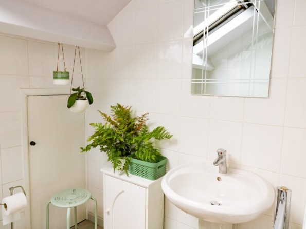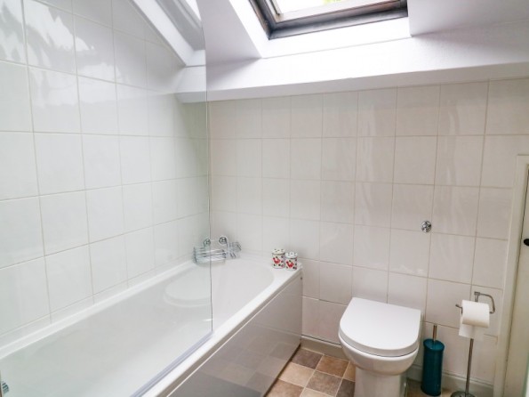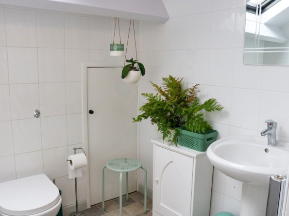 Over two floors. Two bedrooms: 1 x double with en-suite shower and basin, 1 x super king-size (zip/link, can be two singles upon request). Bathroom with bath, separate shower, basin and WC. Cloakroom with basin and WC. Open-plan living room with kitchen and sitting room with woodburning stove