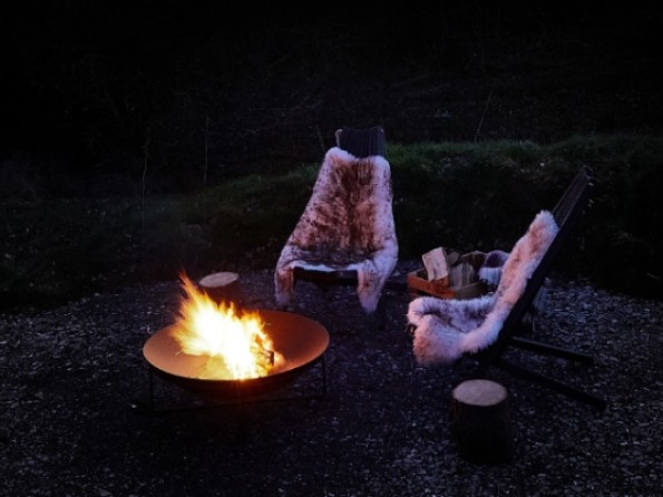 The treehouse has a huge copper bath on the balcony - big enough to accommodate both of you if you’re willing to share! The treehouse also has its own fire pit area nearby where you can toast your marshmallows! Each treehouse has a parking area right outside.