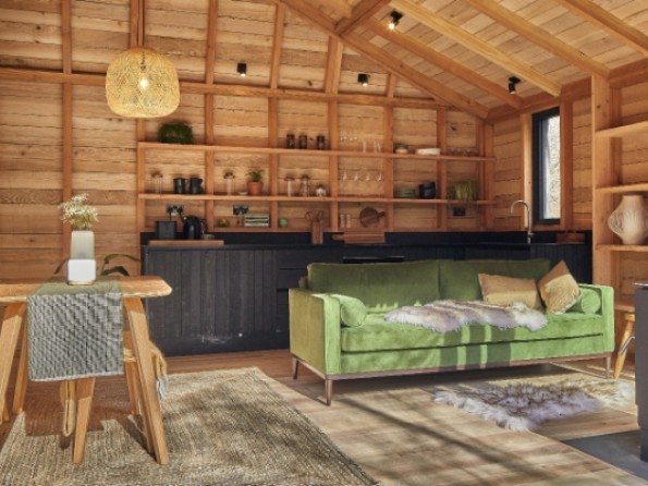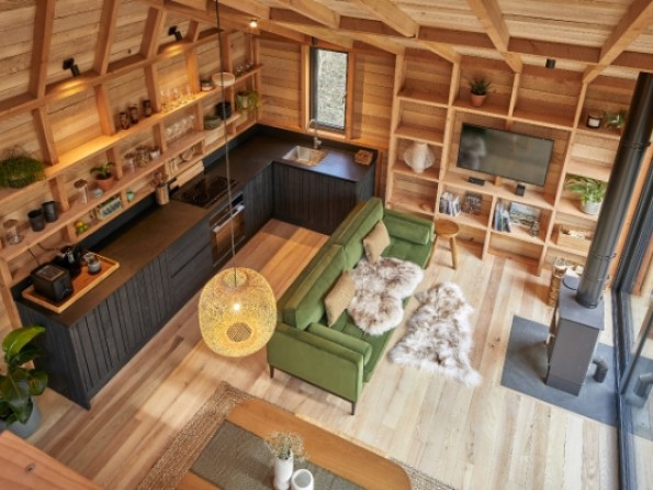 The 20-acre site is a mix of woodland, streams, meadows and apple orchards and is bursting with wildlife. Woodpeckers, owls and birds of prey are regular visitors and if you’re lucky you might spot deer grazing at the edge of the woodland. The owners live in a farmhouse on the east side of the site and have ensured that the treehouses are sustainable and environmentally low impact where people can submerge themselves in nature. The family were determined that the treehouse holidays project should be low impact and benefit the local area wherever possible, so worked with local and renowned timber framers Emmanuel Hendry on the design and build. The Scandi-inspired cabins were a two year project of love, built using locally sourced and sustainable wood and low impact materials, as well as local contractors and suppliers.
