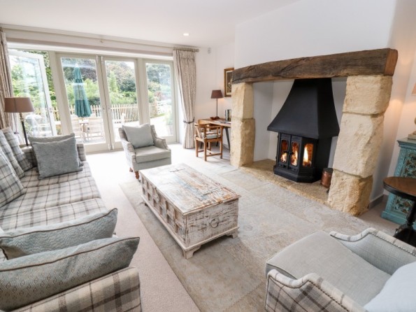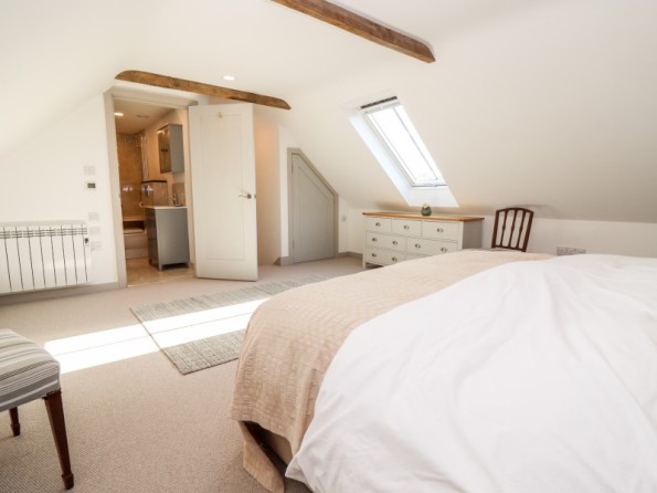 One super-king-size (zip/link, can be twin on request) bedroom with single sofa bed, Smart TV and en-suite bath, walk-in shower, basin, heated towel rail, and WC, and one second-floor super-king-size (zip/link, can be twin on request) bedroom with en-suite bath, shower over, basin, heated towel rail, and WC. Cloakroom with WC and basin. Open-plan living area with a kitchen, dining area, and seating area with a woodburning stove. There is electric central heating. The kitchen has a microwave, fridge, dishwasher, and coffee maker. There is a utility cupboard with washing machine, tumble dryer. For entertainment, there is WiFi and a second Smart TV. Fuel, electricity, and a starter kit for a wood-burning stove are included in the rent. Bed linen and towels are included in the rent. There is a highchair, a travel cot, and a stairgate available. There's plenty of off-road parking. Private fenced-in garden with gravel, furniture, and a grill. One small, well-behaved doge is permitted (no bigger than a cocker spaniel). Sorry, no smoking allowed. The nearest shop is 2.5 miles away, and the nearest pub is 0.3 miles away. Please keep in mind that check-in begins at 5p.m. and ends at 10a.m. Please bring your own bed linen if you are using the travel cot. Dogs are not permitted upstairs and will be charged £25 per week. Stow Cottage Barn is the perfect dwelling for an escape to the Cotswolds with loved ones.