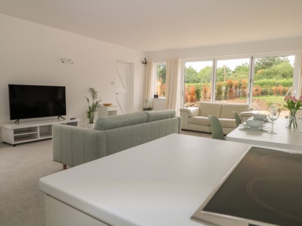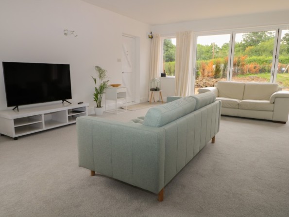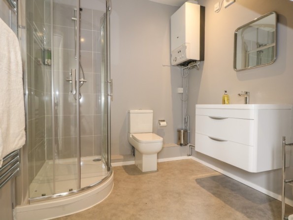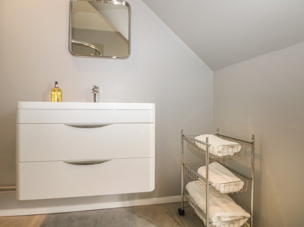 Two bedrooms: 1 x double, 1 x trundle bed (can be made into a single, a twin or a double). Ground-floor shower room with walk-in shower, basin and WC. Open-plan living room with kitchen, dining area and sitting area
