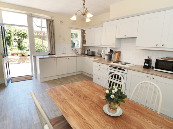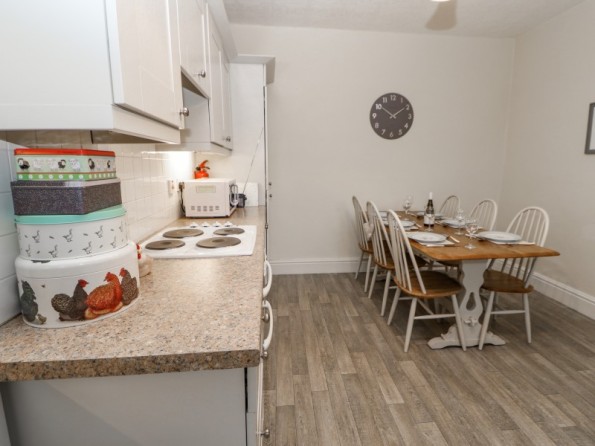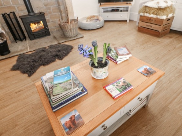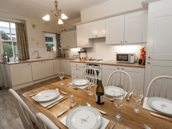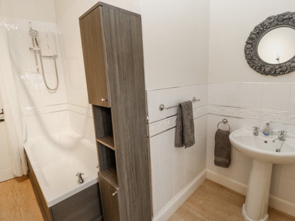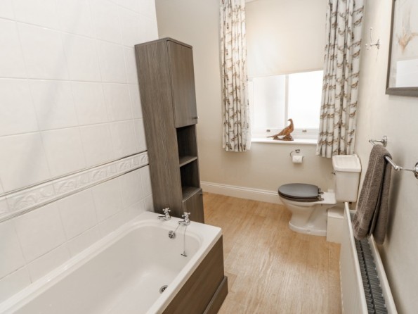 Three bedrooms: 3 x super king-size beds with high TC linens (zip/link can be twins on request). Highchair, stair gate and Travel Cot Available (Please bring your own linen for Travel Cot. Bathroom with bath, shower over, basin and WC. Cloakroom with basin and WC. Kitchen/diner. Sitting room with woodburning stove