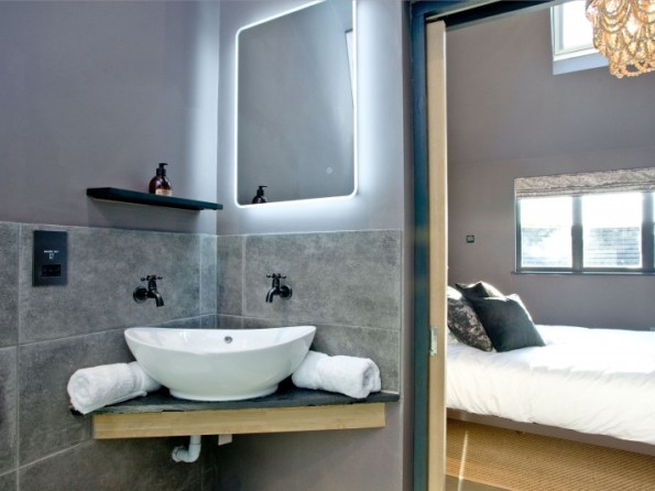 Set within a picturesque corner of Somerset’s tranquil countryside, the historic town of Wells is just four minutes’ drive away and offers the option of boutique-style shopping excursions and fine dining, for those guests who are keen to venture out. The property itself is remote and offers a unique space from which to enjoy the sweeping landscape. Positioned within wild meadows and farmland its design allows it to seamlessly blend in, with the open plan layout flooding the space with natural light and fresh country air. Inside, the polished concrete flooring is heated underfoot, with an eclectic mix of retro styling and industrial chic contrasting the soft, tactile furnishings. Darker wall hues and bespoke lighting reflect off the architectural steel beams, and the modern kitchen with open plan dining area provides the perfect space to create and share meals together. Stretch out on the sofa in front of the wood burning stove and enjoy cosy evenings in; or snuggle up together and have your very own movie night in. The Beam has a wonderful master bedroom that’s complete with a comfy king size bed, reclaimed wooden bed frame and cowry shell chandelier; and the sleek en-suite bathroom with large walk-in shower and rain head adds a further touch of luxury.