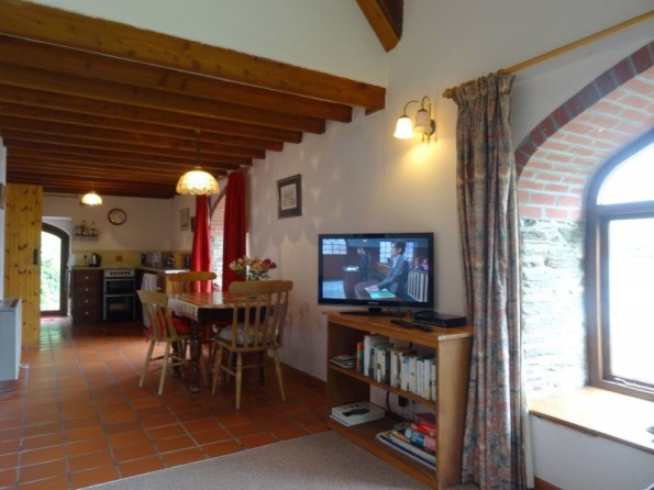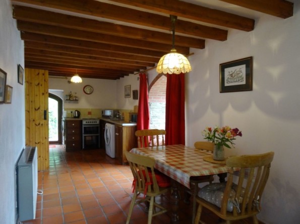 Three bedrooms: 1 x double, 1 x twin, 1 x ground floor childrens bunk room. Shower room with walk-in shower, basin and WC. Open-plan living area, with sitting area with electric fire, kitchen and dining area.