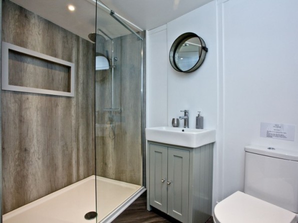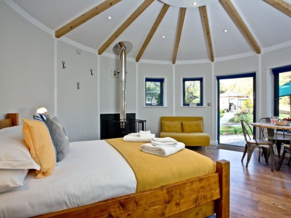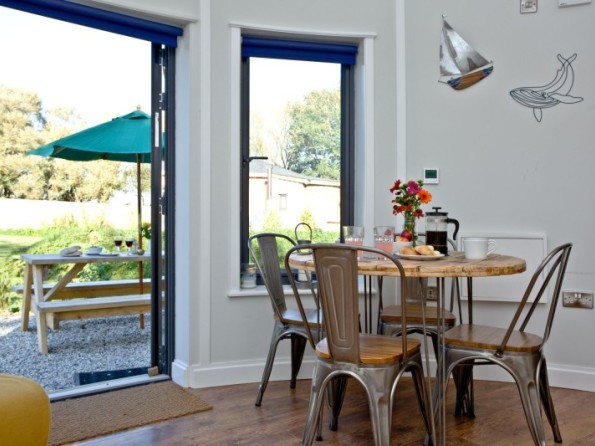 As soon as you step inside, you’ll be greeted by handpicked furnishings in a cool industrial style, adding a hint of chic to your stay. The cosy wood burner and underfloor heating help to create a cosy space and the two cabin rooms offer a tempting retreat to retire to at the end of the day, and the kids can have fun in their own bunk room.