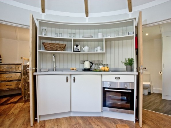 Induction Hob (2-ring), counter-top oven/grill, under-counter fridge, toaster and kettle