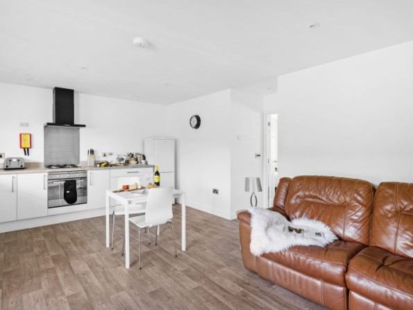 Open plan with the kitchen and living area with double doors leading out onto the terrace