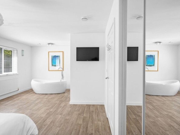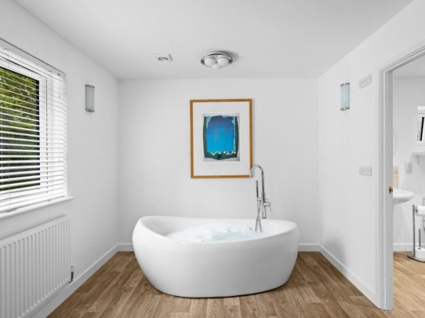As the night draws in you will find a little touch of luxury in the bedroom with a sumptuous king size bed and a tempting roll top bath.