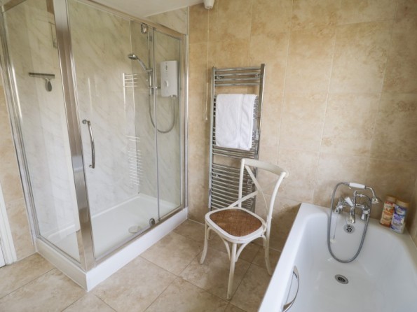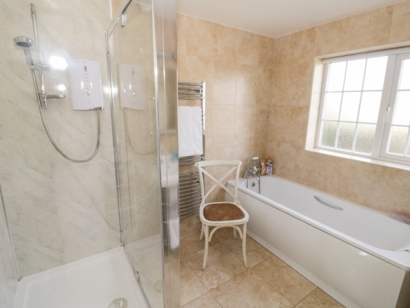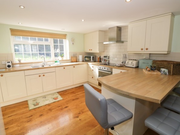 Four bedrooms: 2 x king-size double, one leading to 1 x single, 1 x twin. Bathroom with bath, separate shower, basin and WC. Ground floor shower room with shower, basin and WC. Kitchen with dining area. Utility. Sitting room with woodburner. Games room.