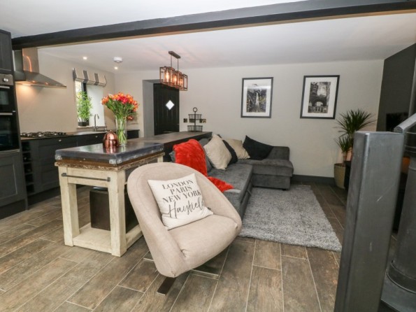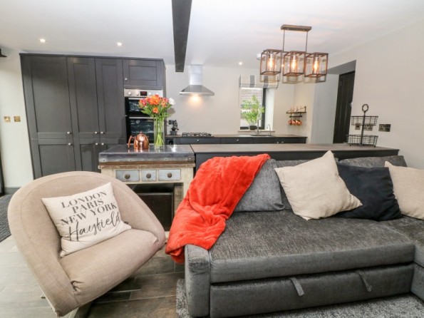 This rustic barn conversion rests in the High Peak village of Hayfield in Derbyshire. Pet-friendly. Romantic. Woodburning stove. Buxton 10.6 miles; Stockport 11 miles; Sheffield 27.3 miles.
