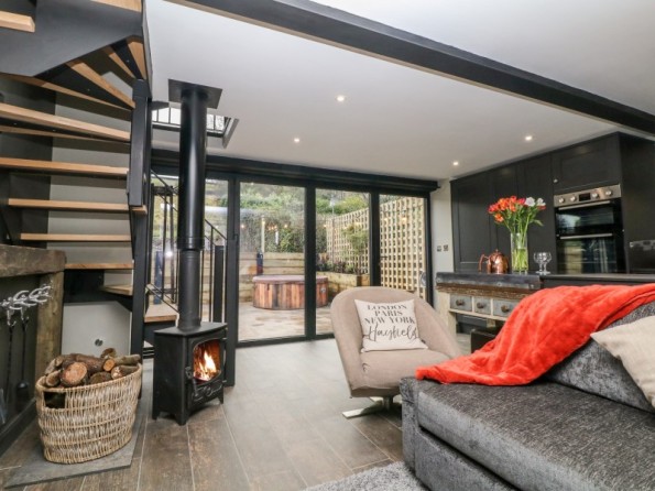 The Cosy is a rustic-style barn conversion in the village of Hayfield in High Peak Derbyshire. There is one double bedroom with an en-suite shower room, sleeping a total of two guests. The property also has an open-plan living space with a kitchen, dining area and sitting area with a woodburning stove. Outside you can find a wrap-around patio and an enclosed patio with furniture and a hot tub, as well as ample off-road parking. The Cosy is a delectable choice for your romantic escape to explore the Peak District.