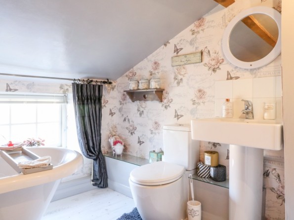One double bedroom. Bathroom with roll top bath, walk-in shower, basin and WC. Kitchen/diner. Sitting room with woodburning stove