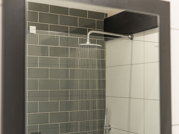 The en-suite to the Master Bedroom this shower room features a wet room style shower with glass shower screen and rain head shower and handheld attachment as well as a hand basin with overhead mirror, a heated towel rail and WC