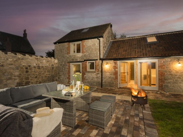 Once a humble farm building, The Cowshed’s exterior which features original stone walls, now boasts contemporary roof lights, modern brickwork and a series of double glazed doors that open out to a large, landscaped courtyard garden that offers the perfect spot for enjoying drinks al-fresco as well as countryside views frequented by sheep, deer and other local wildlife who come visiting. An open barn sits alongside the garden to house a fabulous six-person hot tub which, being under cover means a relaxing soak can be enjoyed morning or night no matter what the weather gets up to.