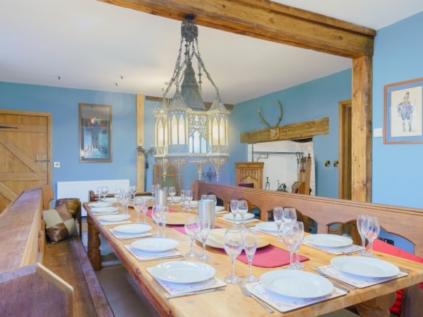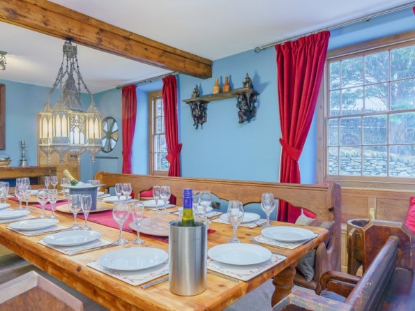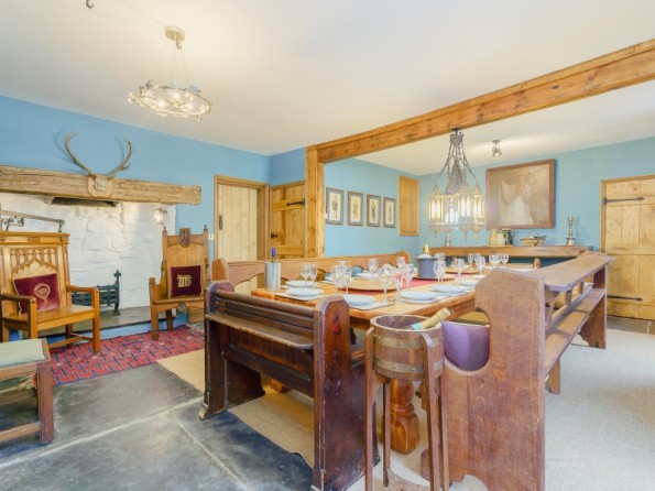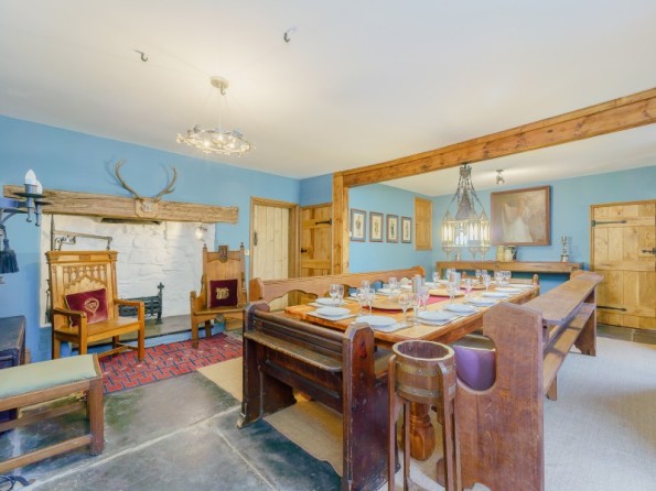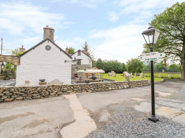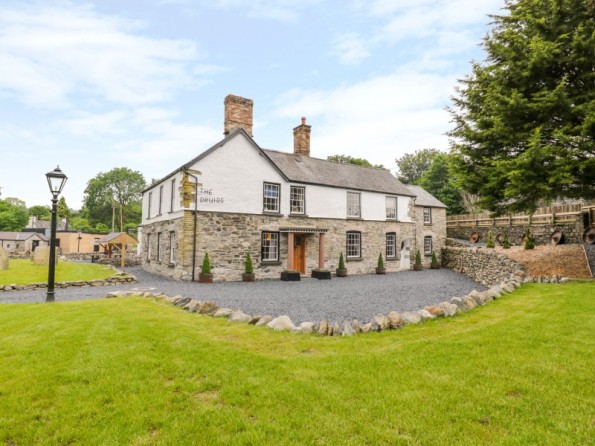 The Druids is a detached property resting on the outskirts of Corwen. The main house comes with nine bedrooms comprising of two king-size doubles with en-suite bathrooms, a king-size double with en-suite shower, two king-size doubles, 1 x double with freestanding bath, two standard doubles and a twin, together sleeping up to 18 people. Here, you will also find a bathroom with free-standing bath, separate walk-in shower, basin and WC, a bathroom with bath, hand-held shower, basin and WC, a shower room with walk-in shower, basin and WC and two ground-floor cloakrooms. Completing the interior is a kitchen/diner, a sitting/dining room, additional sitting room, a utility and a library. The annexe cottage houses two bedrooms, comprising of a double and a twin, sleeping up to four people, serviced by a bathroom with freestanding bath, basin and WC. Completing the interior is an open-plan living room with kitchen, dining area and sitting area. To the outside of both properties you will find ample off-road parking and a large garden with a lawn area, ample furniture, a hot tub, a games room and a bar. The Druids is a superb base for the whole family to come together to this part of North Wales.