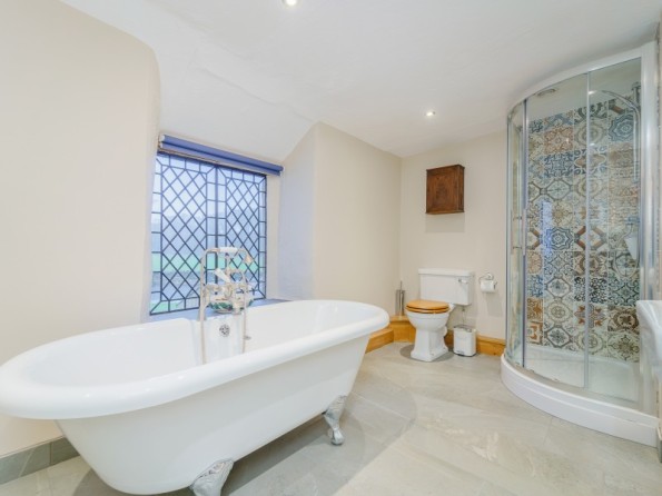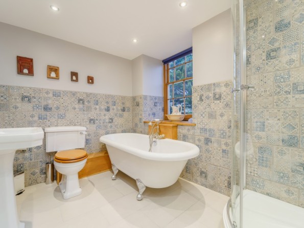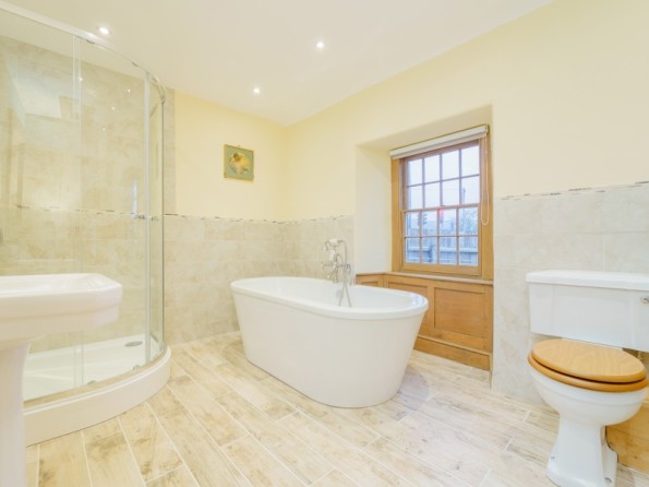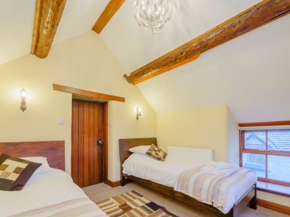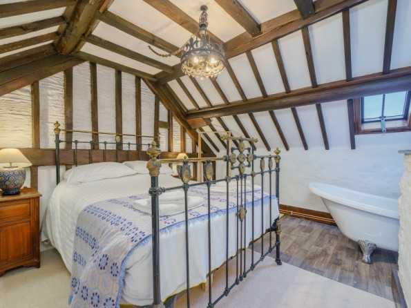 Annexe cottage: Two bedrooms: 1 x ground-floor double bedroom, 1 x twin. Bathroom with freestanding bath, basin and WC. Open-plan living room with kitchen, dining area and sitting area.
