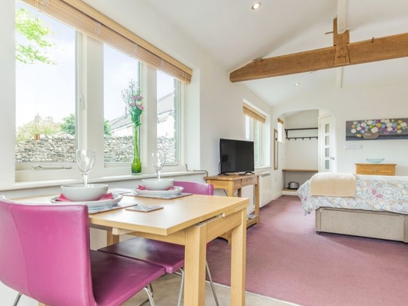 The Friendly Room is a cosy studio property attached to the owners' home in the village of Austwick in the Yorkshire Dales. The open plan living area has a king-size bed which can be offered as twins if required, along with a fitted kitchen area, a dining area and a sitting area. There is a separate shower room. Outside, there is a small patio area with furniture, and off road parking for two cars. Explore the Dales from the doorstep of The Friendly Room or simply try the local ale at the village pub near this charming Yorkshire cottage.