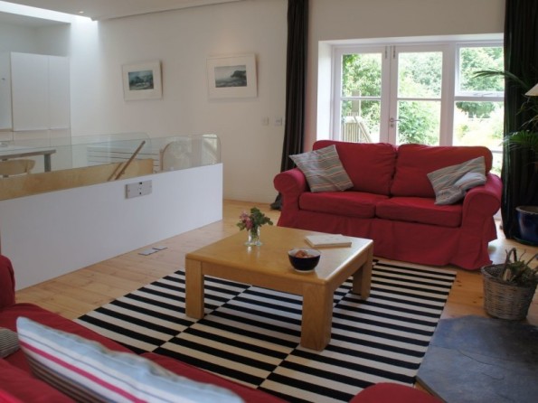 Architect designed reverse-level cottage in a peaceful rural setting. Long countryside views. Enclosed private garden. Six acres of shared grounds. wood burning stove. En suite bedrooms. Aveton Gifford 1 mile.