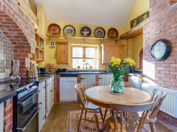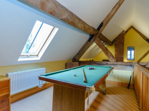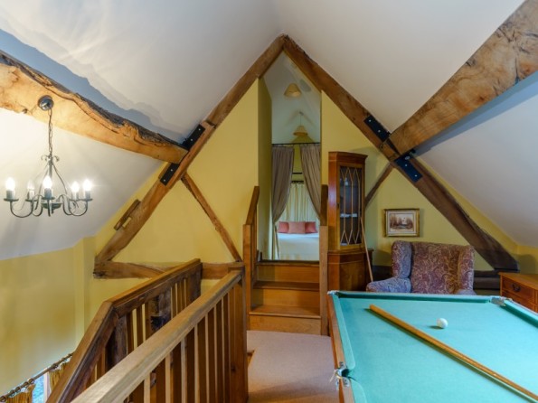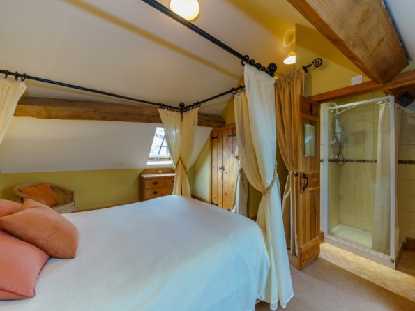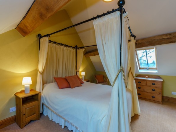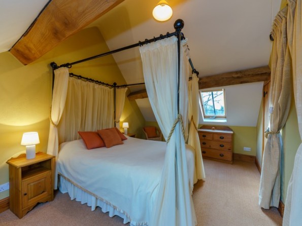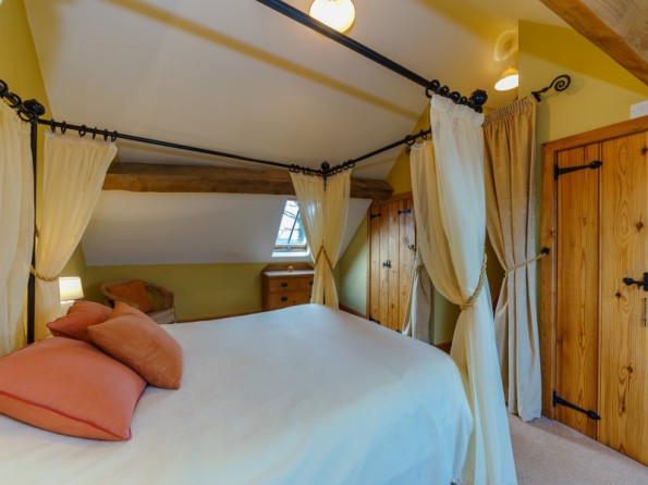 The Granary is located just 6 miles from Church Stretton and was originally a barn used as part of a working farm. It has been tastefully converted to offer accommodation for up to 5 people. Much of the barn's original charm has been retained through features such as exposed beams and a wood-burning stove. Shared use of washing machine and tumble dryer. The hallway sports an oak staircase and leads to the dining area up a set of original stone steps. For romantic couples, there is a four-poster bed and, for larger groups, there is shared use of a games room with its own snooker table. Outside the Granary is a small garden which lends itself to al fresco dining in the summer months.