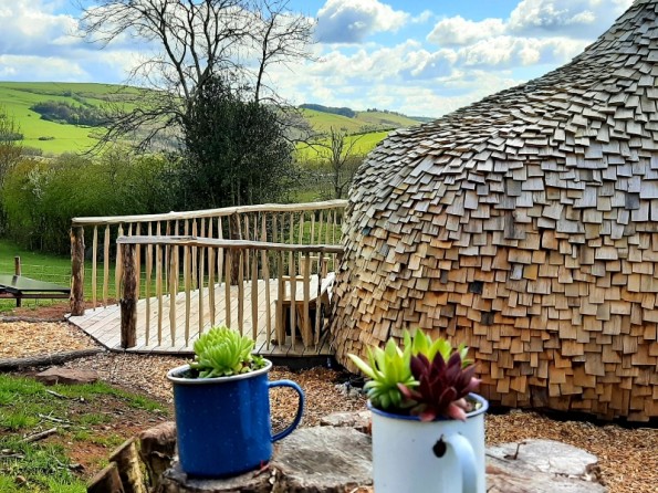 The setting for this glorious One Off Place is an organic farm in the Shropshire Hills, just five miles from the Welsh border. Organic since 2003, the farm is rich in wildlife, flora and fauna, and produces high quality meat from slow growing breeds which have lived a long and happy life! The Hobley House is well secluded - accessed through the garden and along a private path, and built with the environment in mind for those who want to try glamping in England.