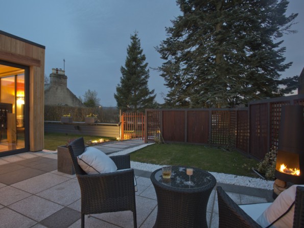 Bi-fold doors from the lounge open onto a granite patio complete with furniture and a chiminea, and from the wet room you can access a top of the range hot tub fenced off with Siberian larch timber. There is off-street parking within the grounds.