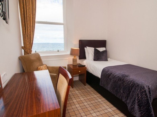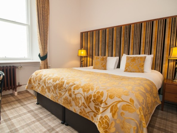 Spectacularly positioned, the property can sleep up to 28 people in 14 bedrooms. Its high ceilings, sweeping spiral staircase, opulent decor and sense of elegance gives the place a luxurious feel. The baronial lounge bar has a log fire and fabulous views. There’s a wide variety of rooms available, from snug classic rooms, to luxury king rooms and family suites. Many of them have superb views of the Moray Firth, some have four poster beds and / or jacuzzi baths. All rooms are well equipped and include complimentary WiFi, the latest flat-screen Freeview televisions, and tea and coffee making facilities.