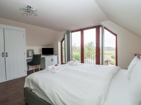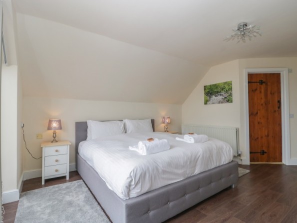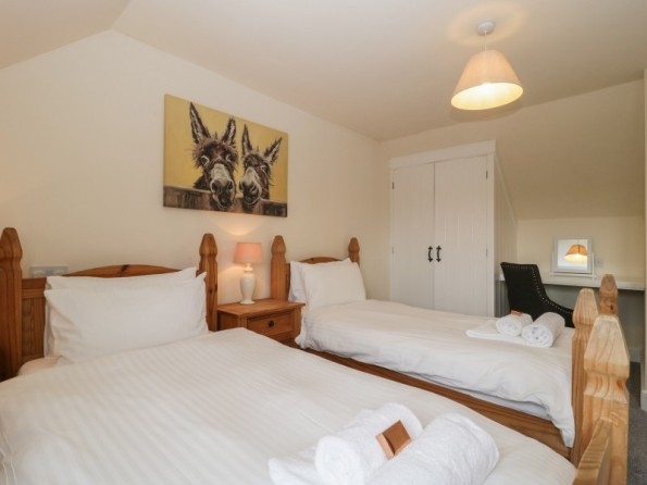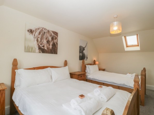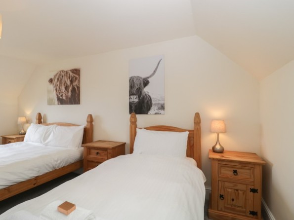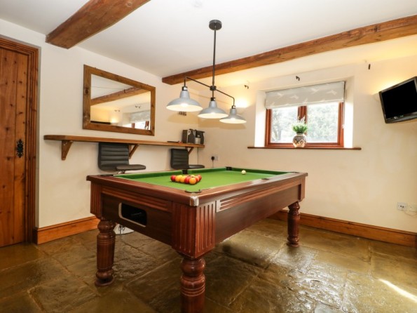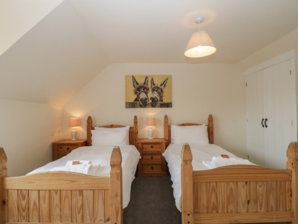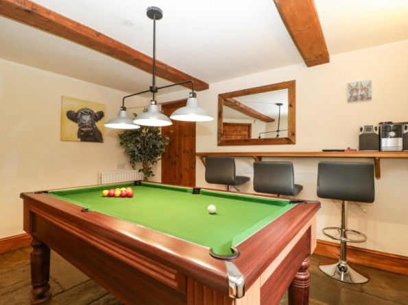 Four bedrooms: 1 x king-size double with en-suite bath, shower over, basin and WC, 1 x double with en-suite bath, separate shower, basin and WC, 1 x twin with en-suite shower, basin and WC, 1 x family room with 1 double and 1 single bed with en-suite shower, basin and WC. Ground floor basin and WC. Kitchen. Utility. Dining room (seats 8). Sitting room with woodburning stove and patio doors to decking. Games room with pool table and table football.