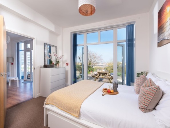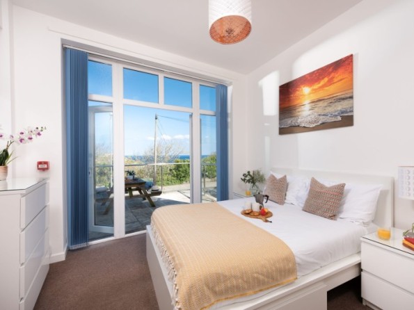 High above the bustle of one of Cornwall’s most popular coastal towns and within easy reach of some of its best beaches, this fab apartment offers families and couples a comfortable and inviting coastal escape in Newquay. With open plan living and pared back styling, Little Retreat feels laid back and airy with plenty of natural light flooding its rooms. A paved private balcony which is accessed via French doors from both the master bedroom and the living room is a great spot for enjoying a morning coffee or fresh air dining, while the fully equipped kitchen with its integrated dining area is perfect for both rustling up and sharing home cooked dinners.