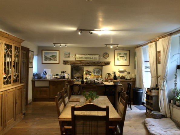 The farmhouse gives off a calm and cosy vibe, oozes original features, and can accommodate up to 12 people in four bedrooms, two family suites and two king size bedrooms, all ensuite. There is an open plan kitchen diner, well equipped and with underfloor heating. There’s a lovely wood panelled sitting room with a large inglenook fireplace, and plenty of board games and books. The separate utility room is home to a washer, dryer and fridge freezer, and there is satellite TV and Wifi.