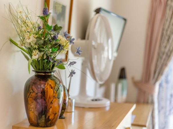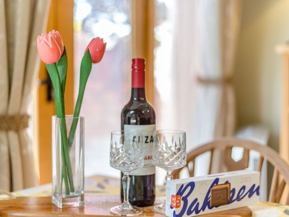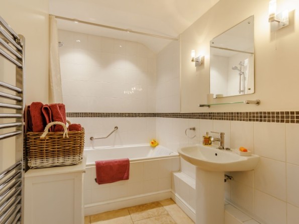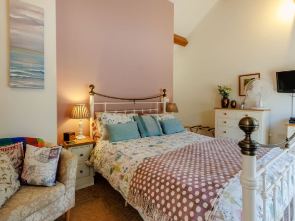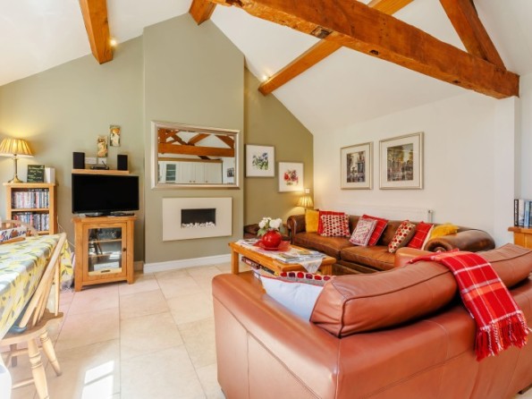 All ground floor. One king-size double bedroom with en-suite bath, shower over, basin and WC. Open plan living area with kitchen, dining area and sitting area with electric fire.