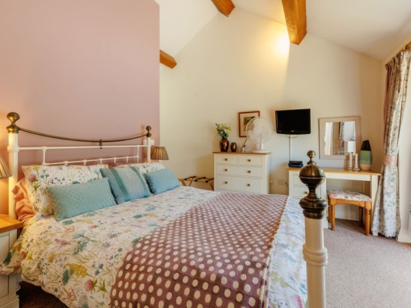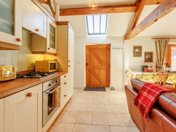 The Milking Parlour is a semi-detached, Grade II listed, ground floor barn conversion in the village of Yarpole just 4.8 miles from Leominster. The cottage sleeps two people and has one en-suite king-size bedroom. Also in the cottage are a fitted kitchen with dining area and sitting area with electric fire. Outside is off road parking for one car and a patio with furniture. Situated in the Herefordshire countryside, The Milking Parlour is a romantic holiday cottage from which to explore this lovely part of the country.