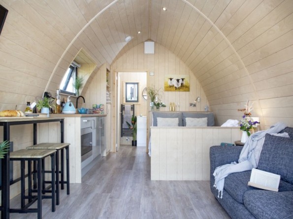 Positioned in a quiet field on a private working farm but within just a short stroll from Wells, this beautiful glamping pod is a small oasis of luxury in a delightfully rural setting, where couples can unwind in blissful solitude away from a busy schedule while at the same time experience the atmosphere of a truly alluring English city. Created with perfect proportions that feel more boutique retreat than rustic, the pod’s interior feels contemporary, spacious and airy, with creature comforts galore. There’s a dining area, living room, kitchen and bedroom all laid out as open plan and a separate bathroom which includes a large walk-in shower complete with rain head. But what makes The Nave so incredibly special is its unrivalled view of Wells Cathedral which can be seen from nearly every angle.