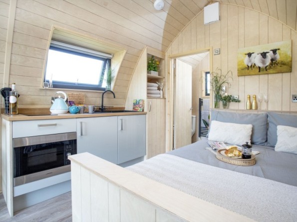 Treat yourselves to morning lie-ins with the French doors open and enjoy the magnificent outlook or step out on to the timber deck where you’ll be able to unwind in the sunshine with a cup of coffee and a good book. Designed with relaxation in mind the pod comes complete with its own private wood-fired hot tub which has been tucked away to the side of the lodge, and a fire bowl which doubles as an outdoor grill that's perfect for chilled out evenings and al fresco dinners.